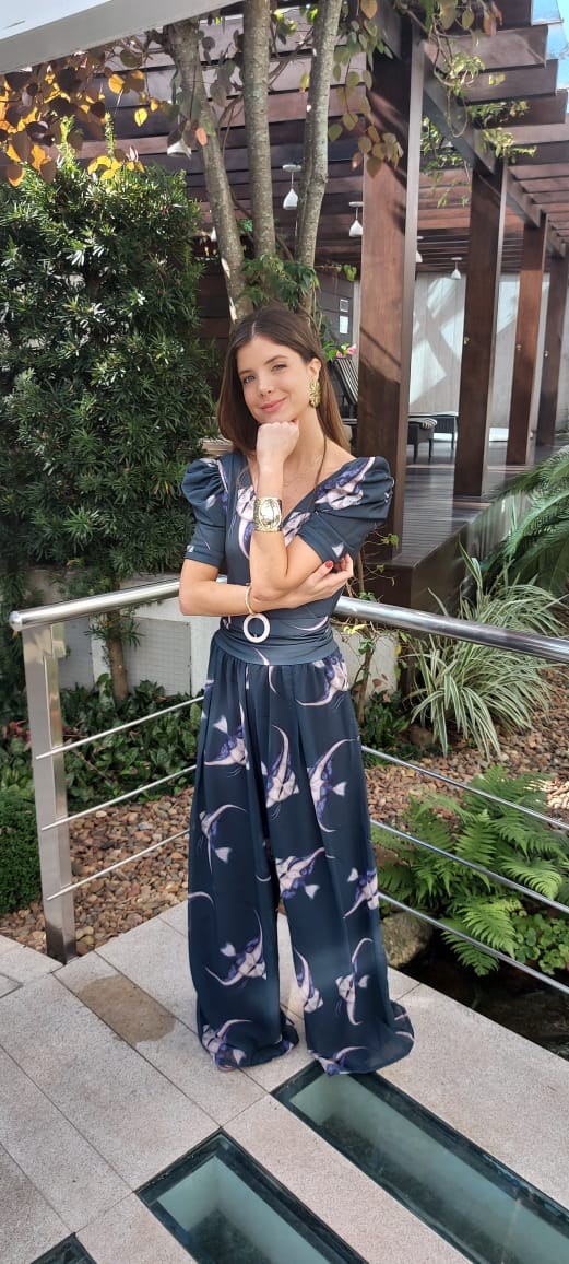 Composição: Crepe toque de seda em estampa exclusiva, 100% poliéster.