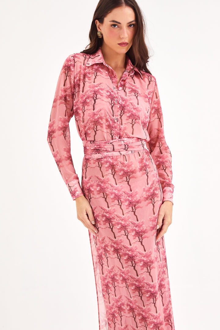 Composição: Crepe toque de seda em estampa exclusiva Cerejeira Rose. 100% poliéster.