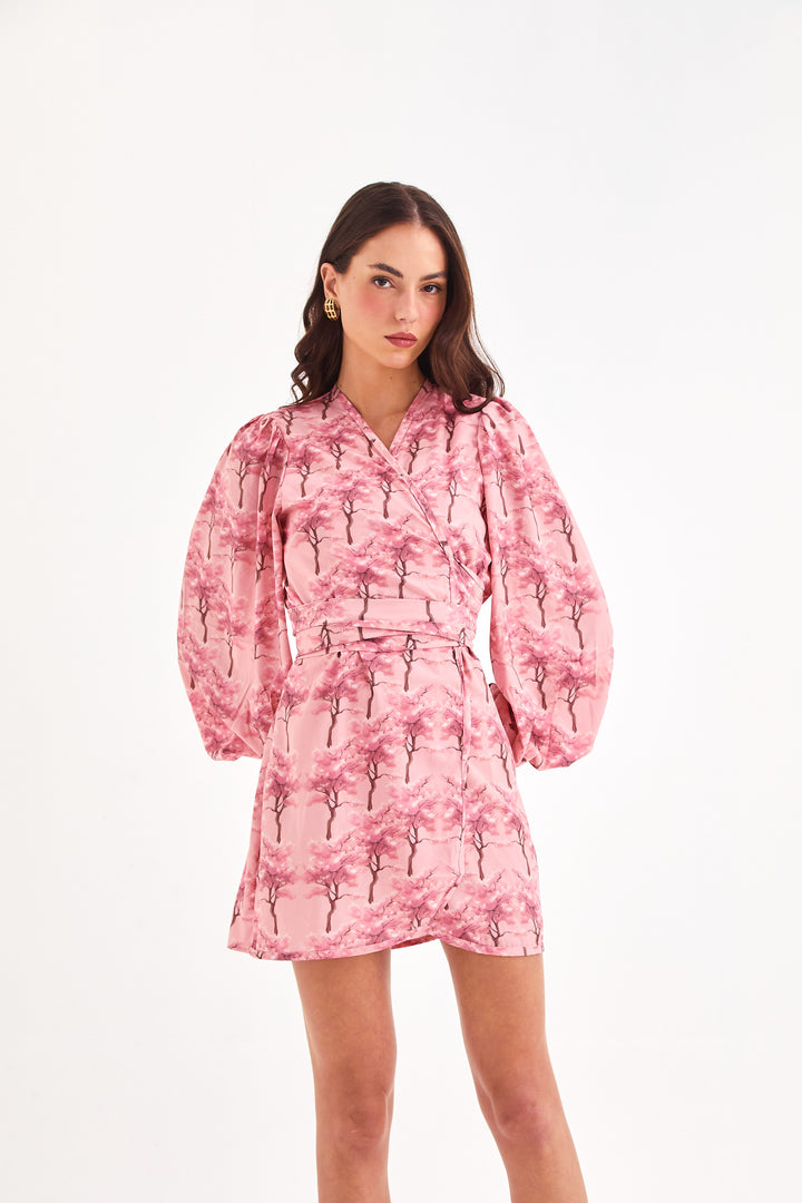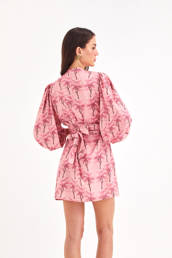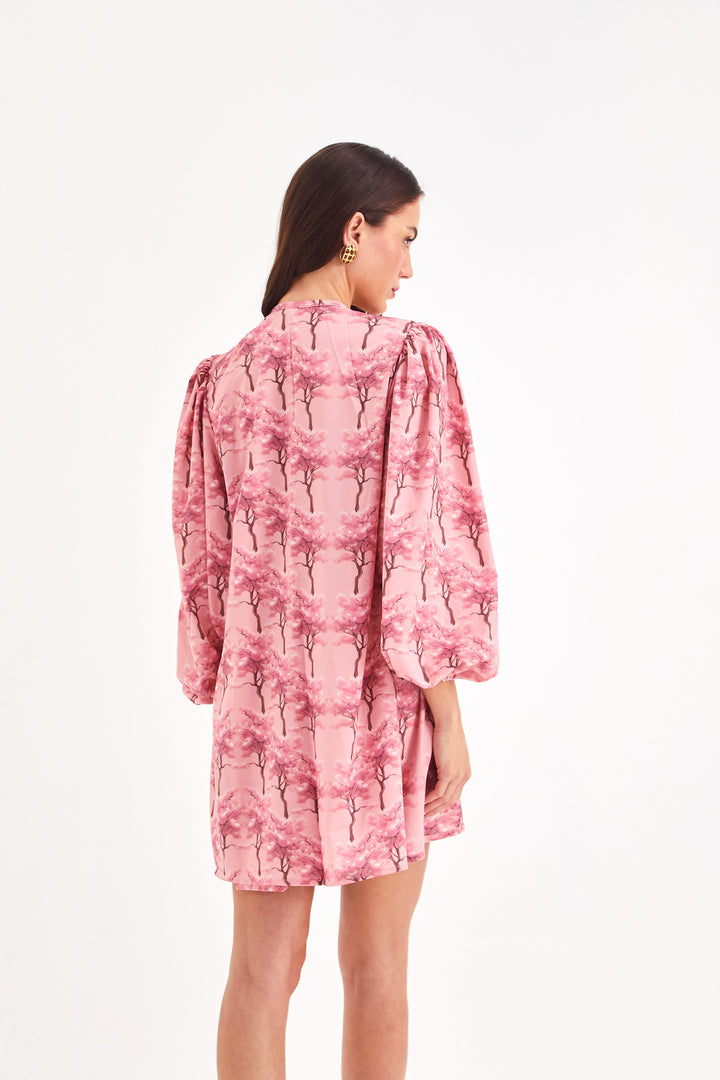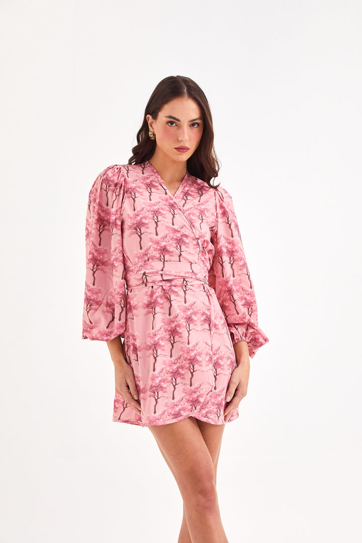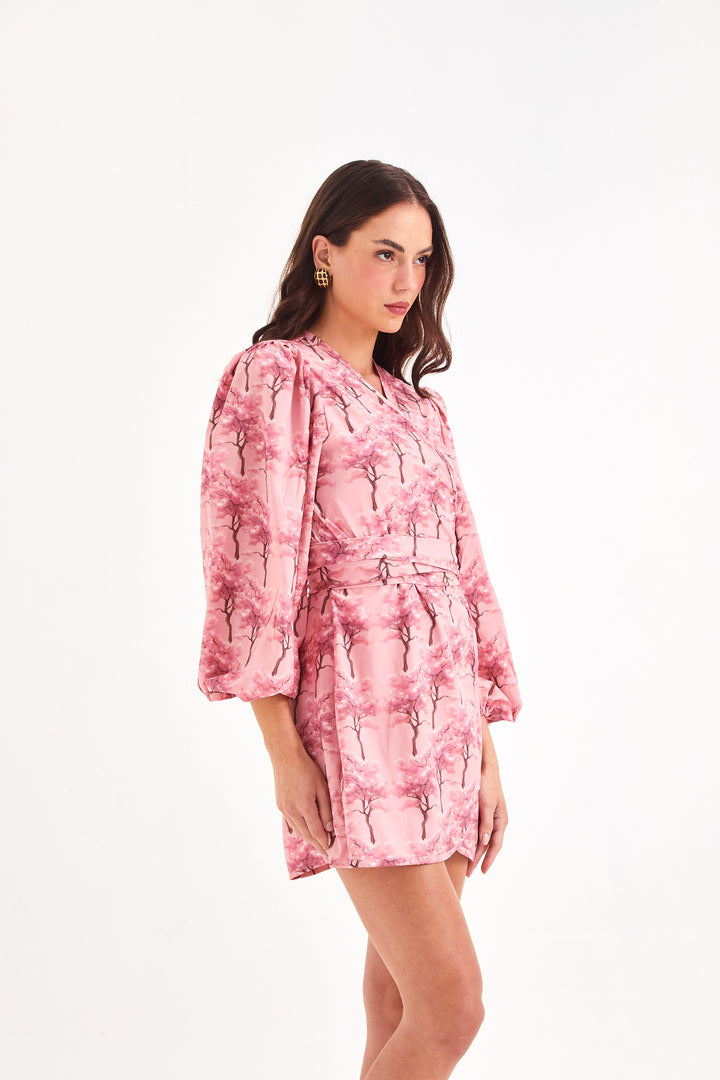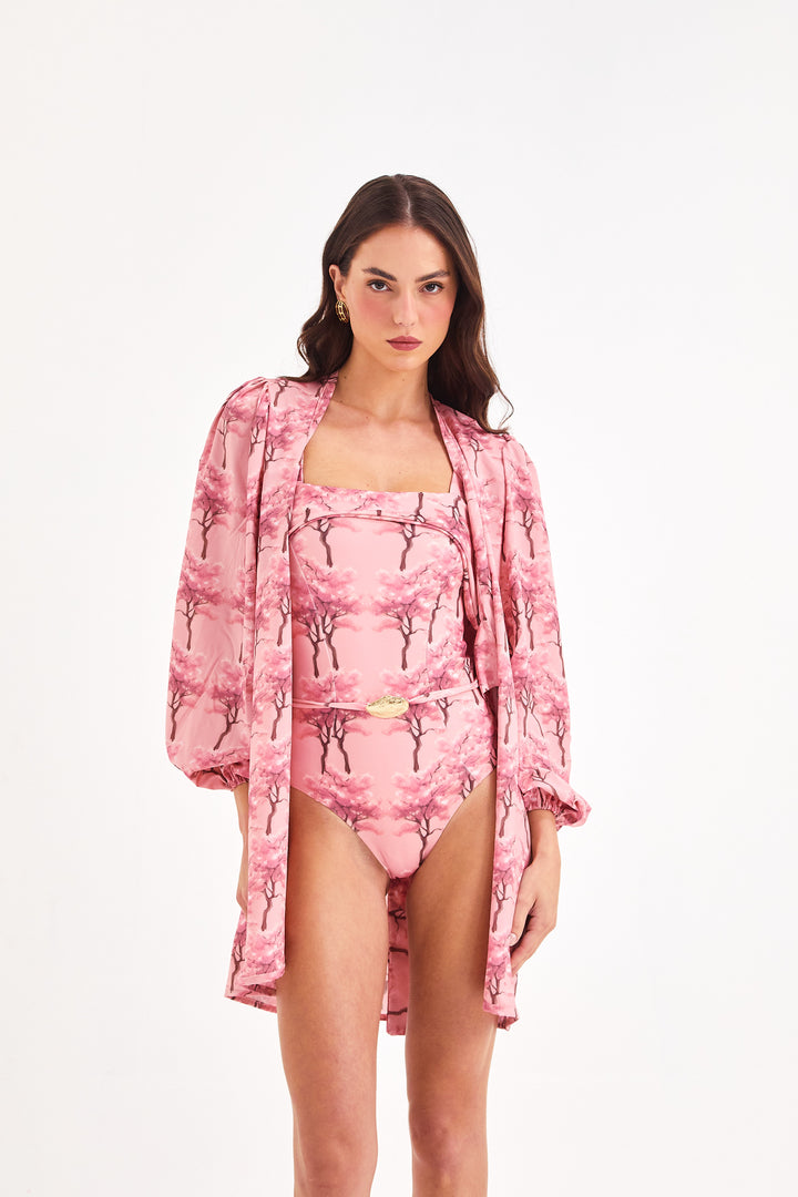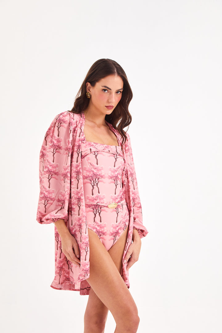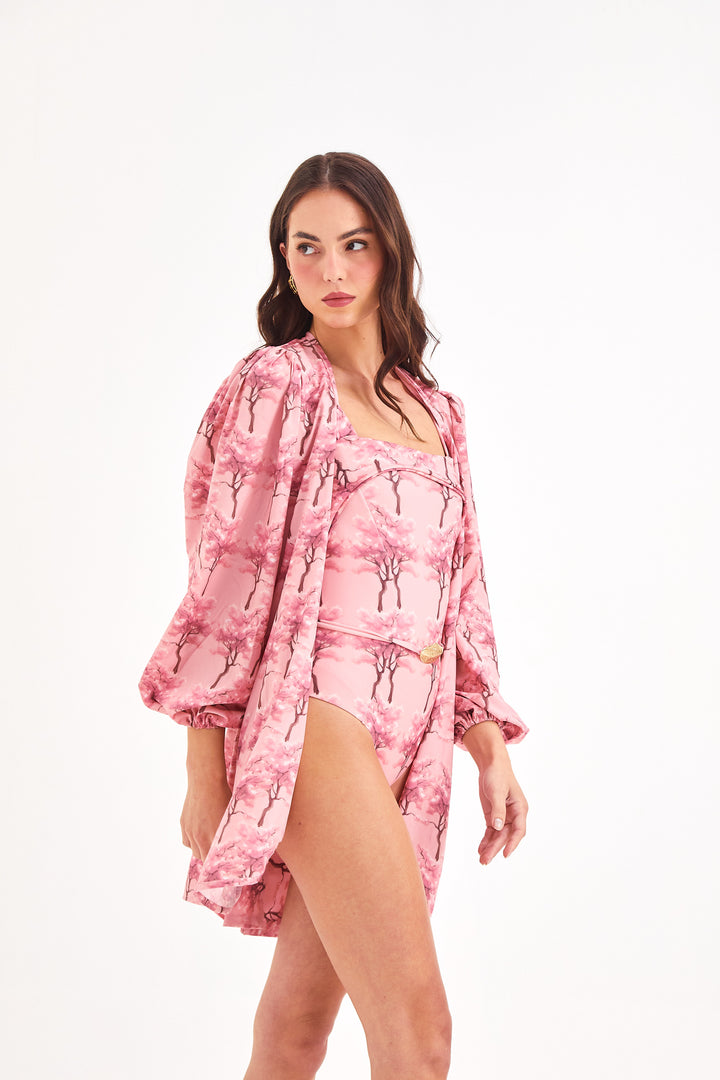 Composição: Crepe silk em estampa exclusiva Cerejeira Rose, 100% poliéster.