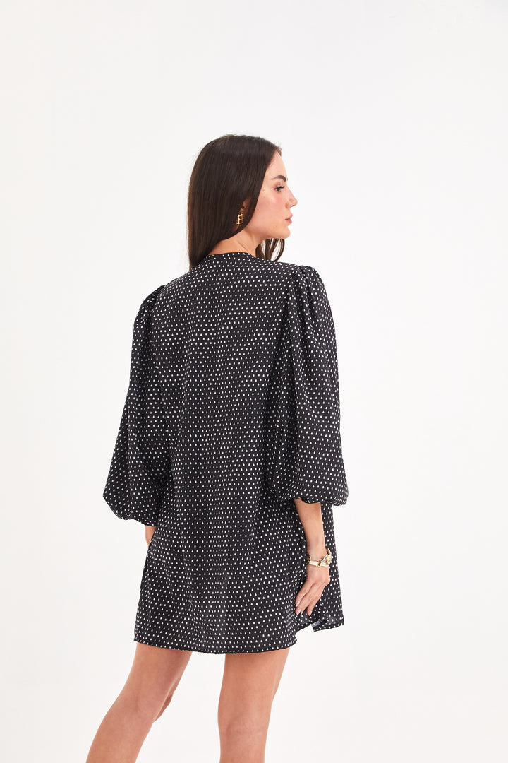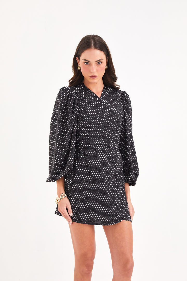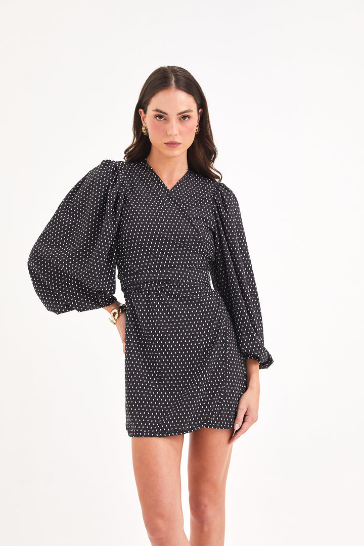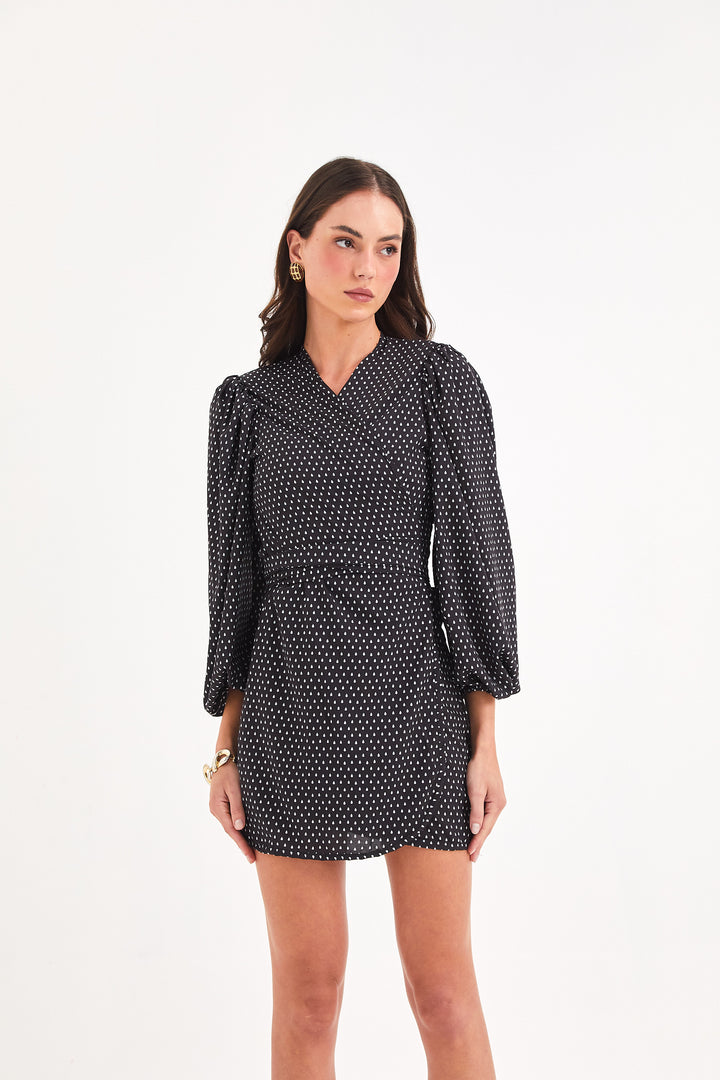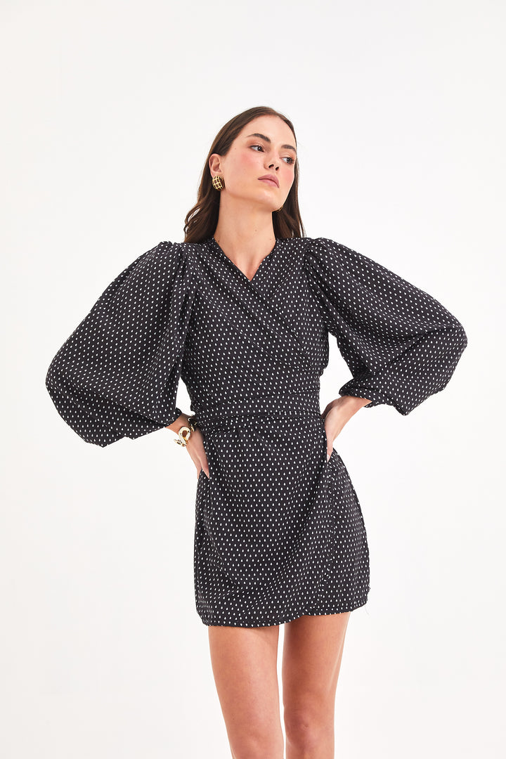 Composição: Crepe silk em estampa exclusiva Gotas Black, 100% poliéster.