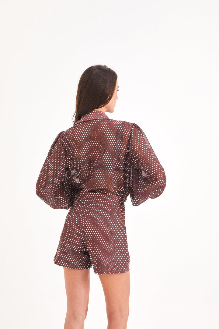 Total Look: Camisa Antônia e Short Aline Gotas Expresso