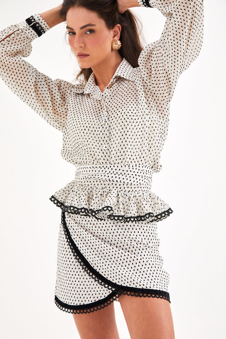 Total Look: Camisa Classic e Saia Camila Gotas Off White